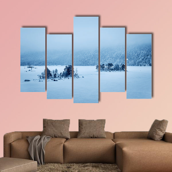 This cheap canvas print is illustrating the fantastic view of a forest. The backdrop of this print is giving the view of stunning Lake Eibsee with snow on a cold day in Bavaria. In this print you can see the amazing view of snowfall. This large canvas wall art set print is available in clarnia store.