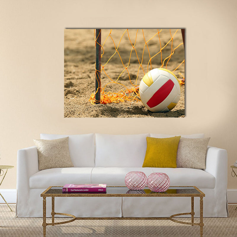 Goal on the beach with a volley ball Multi Panel Canvas Art