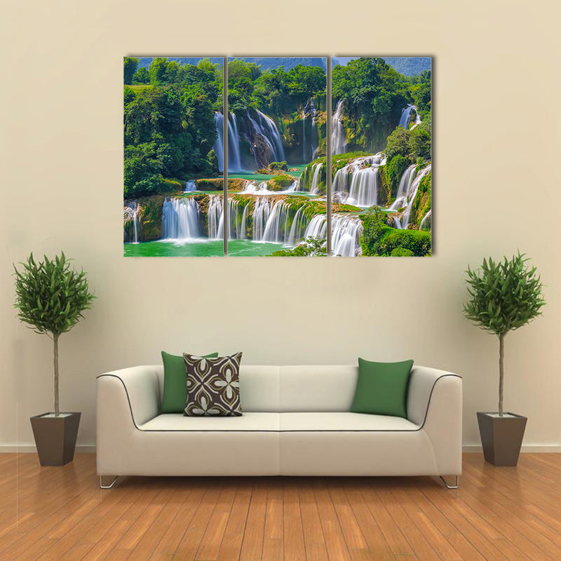 This cheap canvas print is illustrating the beautiful and scenic view of the landscape of waterfall. This is the landscape view of the waterfall Detian. There are two waterfalls which are collectively named Detian on the Quay Son River, landscape view of waterfall Detian multi panel canvas wall art. The waterfall is extremely beautiful and falls in different layers. You can buy this large canvas print wall art set from Clarnia store.