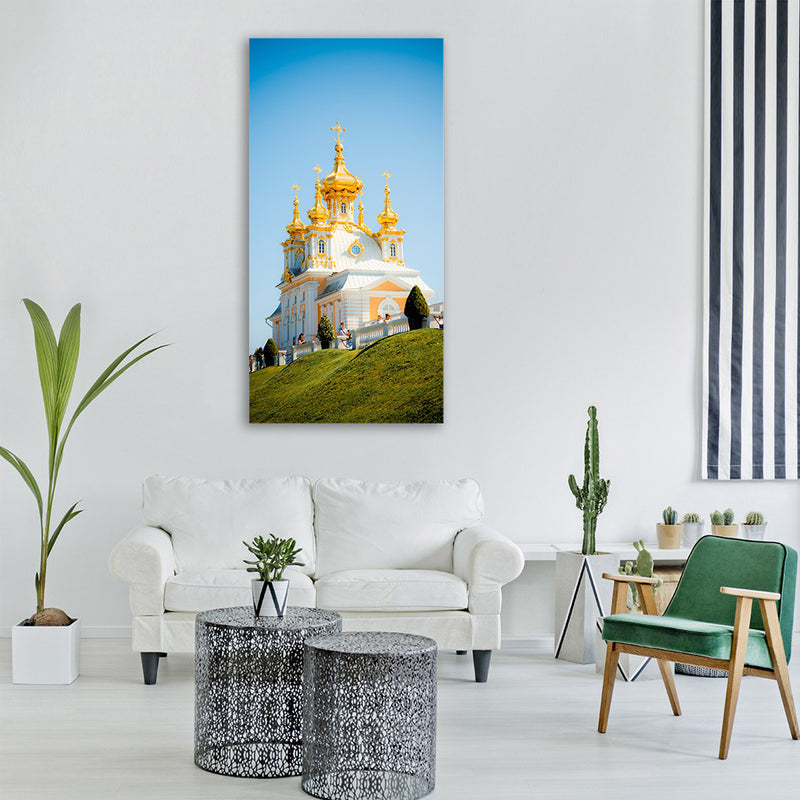 A peterhof churchvertical canvas prints can be used to add life to the still walls. How about a dull wall with no way to dazzle out in the most amazing way with the fascinating cheap canvas prints. Decorating your place with the canvas prints from Clarnia is going to be the best of your decisions. Ranging for the dimensions of the walls, you can get a customized canvas prints from the alluring singles to ethereal multi panels canvas wall art sets. So what are you waiting for? You can get the vertical canvas prints in sets of different pieces. It may be taken as a single piece Canvas or a set of 3 pieces Canvas, 4 pieces Canvas set or 5 pieces Canvas Wall Art set depending upon your desire. Furthermore, we have matte printed canvas which adds depth to the walls or in gloss that glams up the walls with their shining outlook. Talking about the textures, it would be according to your desire, the thing which you want i.e. a print, picture, painting, abstract, crayoned, oil painted version etc. select one for you and next we will book an order for you and you will get your wall art at your door step.