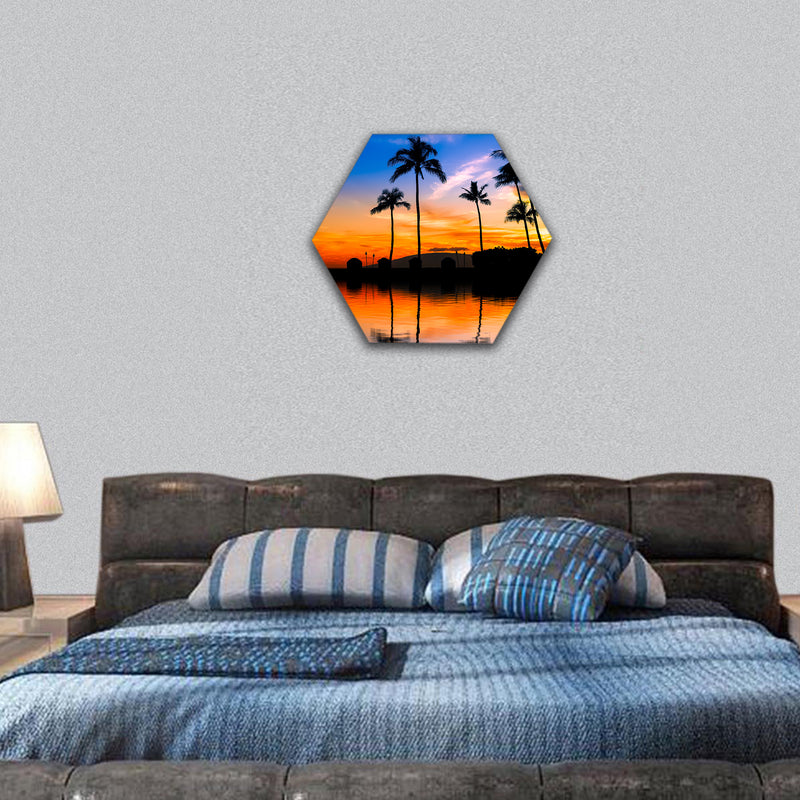 Clarnia is a concept store and your one stop solution for adding class to the interiors. Here you go with the most surreal Hawaiian sunset with palm trees hexagonal canvas wall art collection. We specialize in Hawaiian sunset with palm trees with perfect animation of designs and colors with bold strokes and hues. Every tint is going to melt your heart. Our paneled wall art collection is here to get you bundle of compliments.