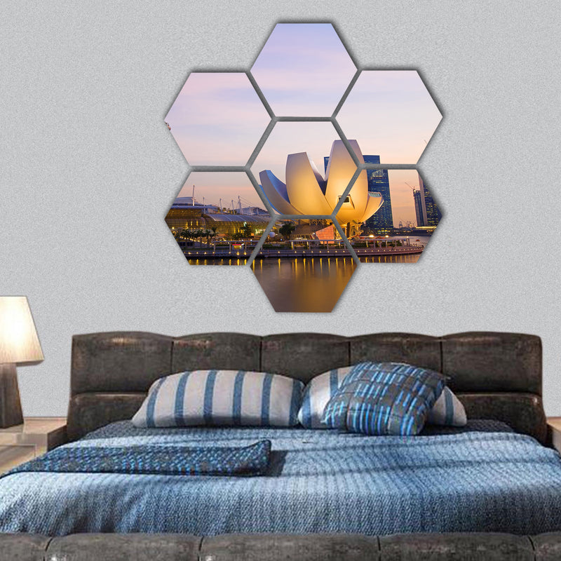 Sunset scene from the river financial district Singapore hexagonal canvas wall art