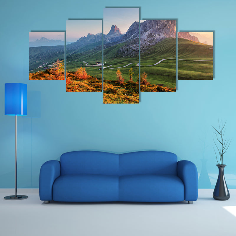 In this cheap canvas print you can see a beautiful mountain landscape in the dolomites. There is a series of big and small, mountains and all these are touching the sky, An elegant Mountain landscape, dolomites Multi Panel Canvas Wall Art. The shape and texture of the mountains are rough and ugly. There is a road in between the two vertical mountains and the zigzag shape of the road is attracting the visitors. The canvas print is designed by the clarnia store and its beauty can never be eroded.