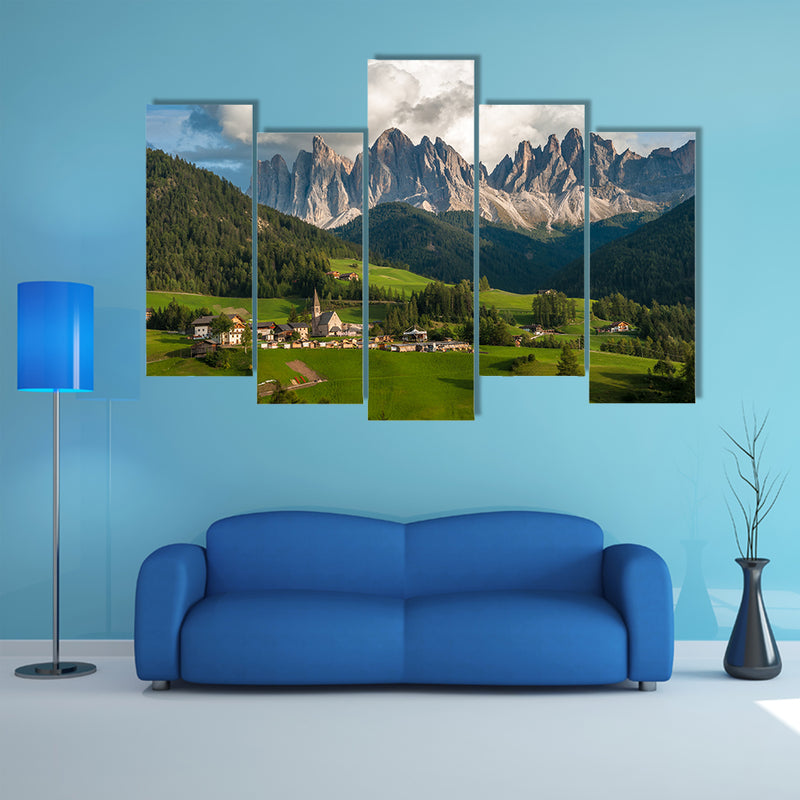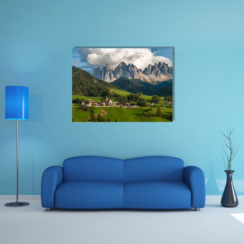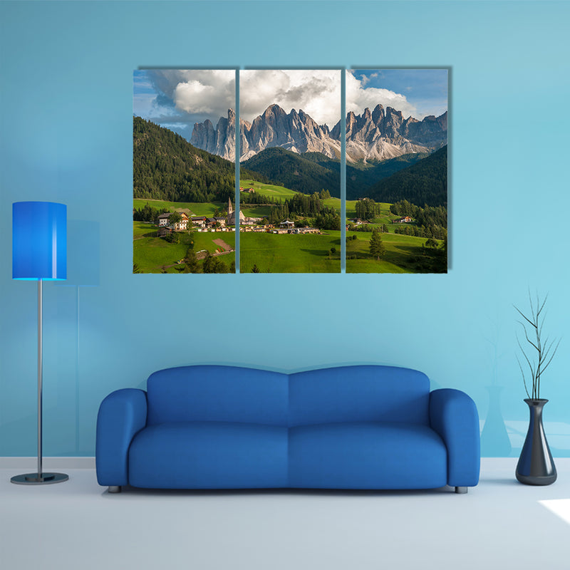 The beauty of the Santa Maddalena Village and the Dolomites, Val di Funes, Italy Multi Panel Canvas Wall Art