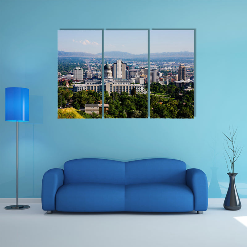 The salt city that is presented in this cheap canvas print is located in the Utah in Switzerland. The city is one of the biggest cities of the world. There are big green mountains far behind the city and the city is very populated as you can see from the buildings and surroundings of the city, The Salt Lake City, Utah Multi Panel Canvas Wall Art. There are tall trees as you can see, these trees are increasing the beauty of the city and are cleaning the air of this most populated city. It is designed by the clarnia.