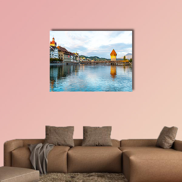 View of Luzern city, River Reuss with old building, Luzern multi panel canvas wall art