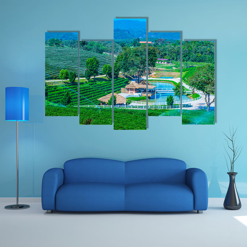 Tea plantation in Chiang Rai province, Thailand multi panel canvas wall art