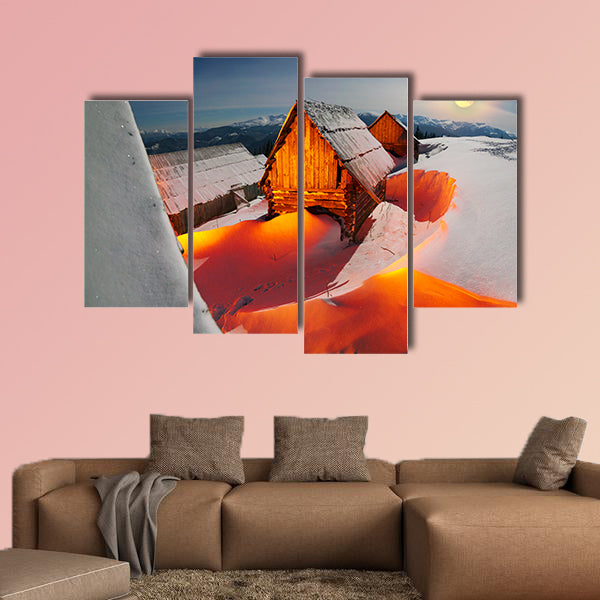 In this canvas print you can see the blizzard covered alpine fields’ shepherds in the Ukrainian Carpathians. The beautifully lit golden light barns and houses shepherds in the cold winter and frost on the background of mountain peaks are looking attractive to the eyes. This cheap canvas print has been prepared by the Clarnia store that is a canvas making store. You can use this wonderful large canvas print for home and office décor as well. The moonlight is adding gleam to the environment.