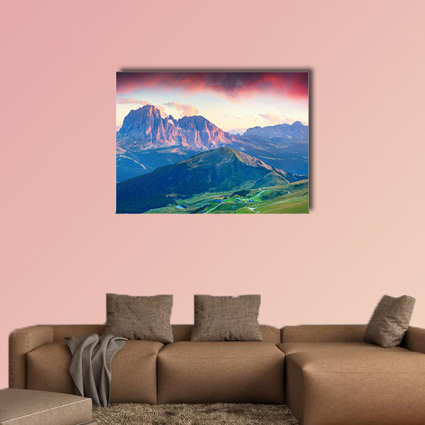 The colorful summer sunset on the Sassolungo (Langkofel) group can be enjoyed in this large canvas print. It is located in the valley Gardena. The National Park dolomites, South Tyrol and the location Ortisei, along with the S. Cristina and Selva Gardena, Italy, Europe all are looking outstanding. This cheap canvas print can be obtained from the clarnia store and it can be used for office décor as well. The sky is looking very elegant and the reflection of the sunlight has increased its beauty.