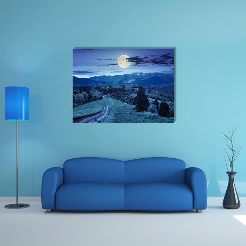 This is the print that is a composite landscape. The pine trees in the print are increasing the beauty of the road along which they have been grown. The road through which the meadow is passing and the hillside is covered by the large trees and plants, A Composite Mountain Landscape With Pine Trees By The Road Multi Panel Canvas Wall Art. The pine trees near the road on the hillside are reflected in the light of the moon and making the weather cool and calm. This cheap canvas print is designed by the clarnia store and is one of the best canvas prints for wall decor.