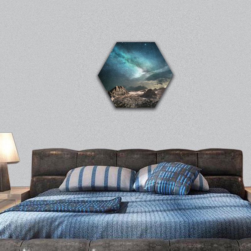Clarnia is a concept store and your one stop solution for adding class to the interiors. Here you go with the most surreal milky way at dawn on a mountain landscape hexagonal canvas wall art collection. We specialize in milky way with perfect animation of designs and colors with bold strokes and hues. Every tint is going to melt your heart. Our paneled wall art collection is here to get you bundle of compliments.